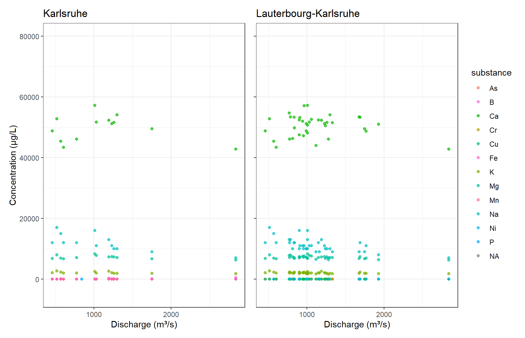gp_Karl <- ggplot(df_k, aes(x = discharge, y = conc, color = substance)) +