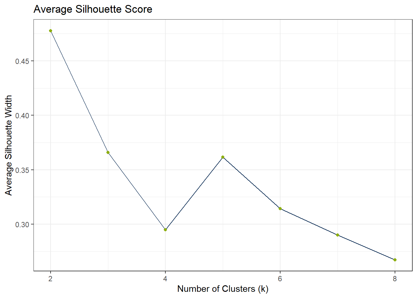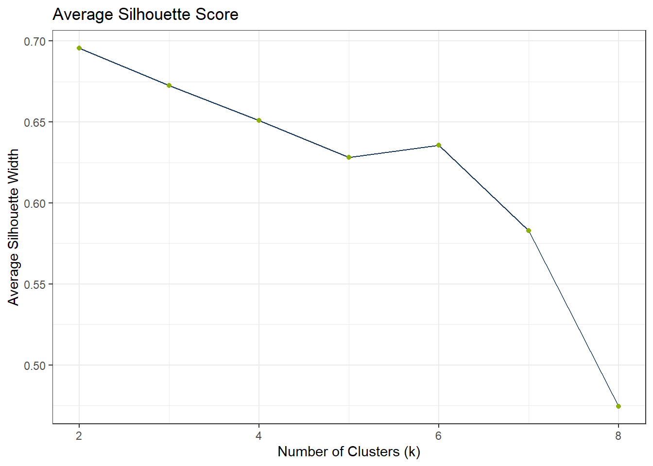 df_Kmeans_Silhouette_UMAP$avg_silhouette[df_Kmeans_Silhouette$k == i] <-