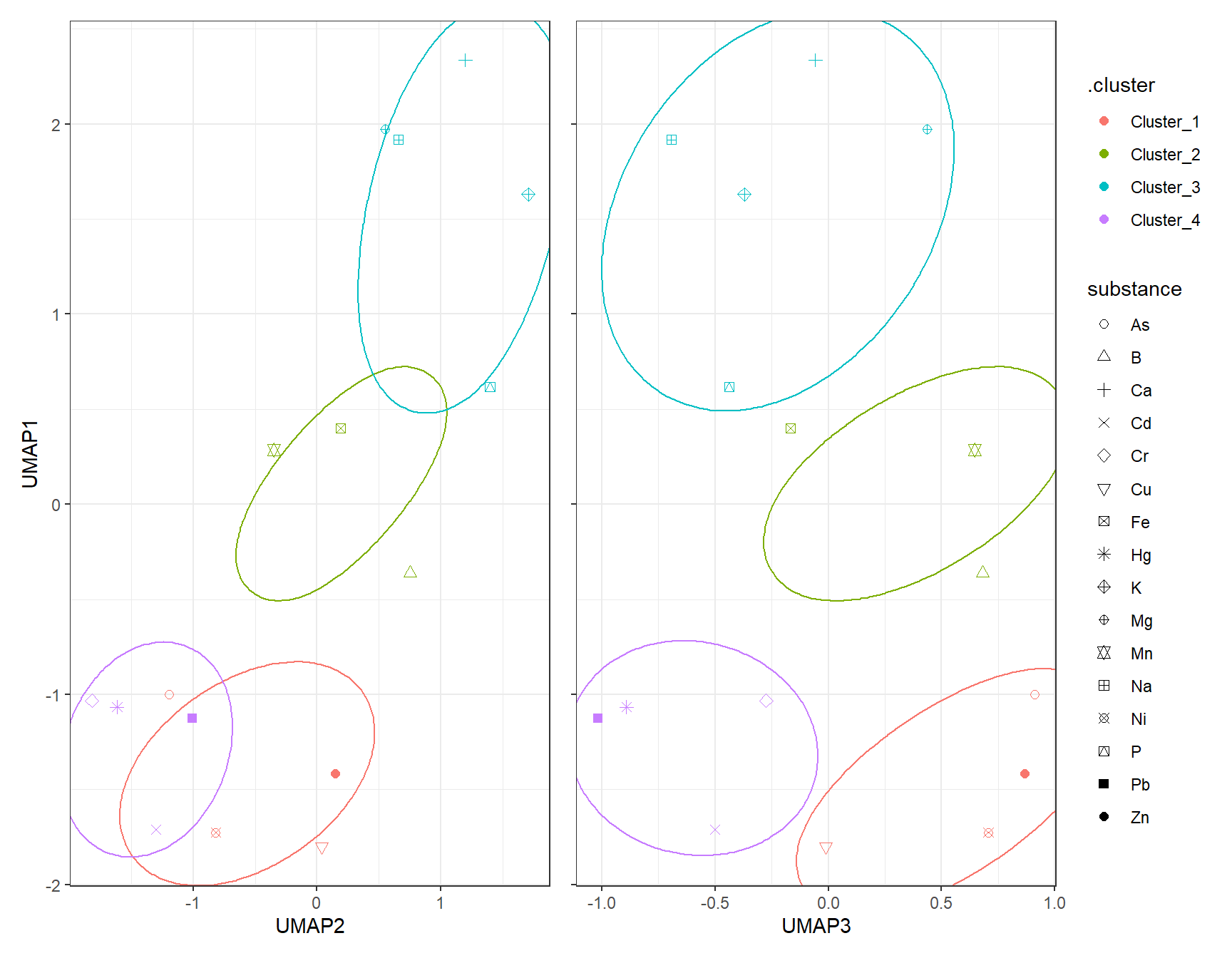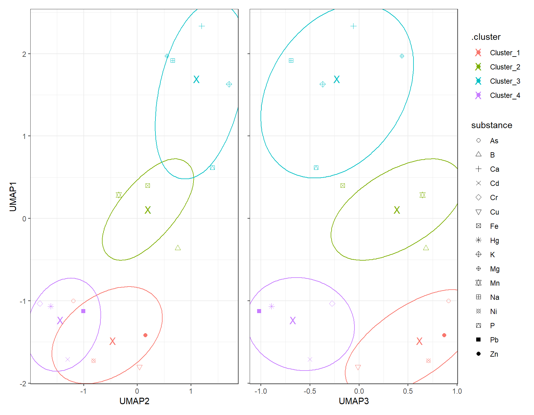 fit_Kmeans_UMAP <- fit(wflow_Kmeans, data = df_Clust_Substance)